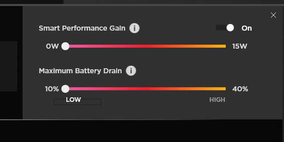 Smart performance gain ayarı Dynamic Boost, CPU'nun harici karta ayırdığı güç yani. Maksimumda kalması daha iyi performans açısından. Alttaki ayar da yük altında cihazın adaptörden çekebileceği maksimum yüzdelik gücü ayarlıyor, genelde HP'de bataryadan yemiyor ama gene o şekilde kalmasında problem yok.