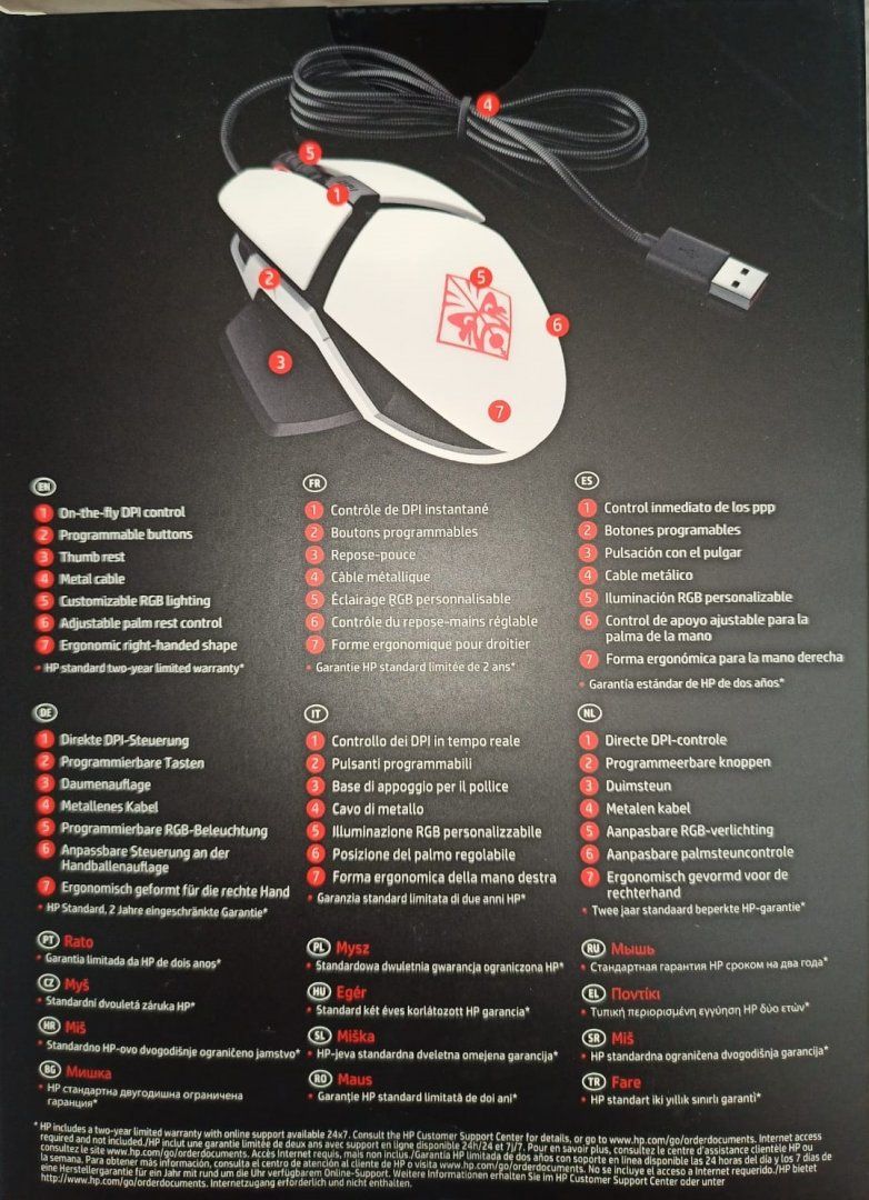 Kutunun içinden garanti belgesi, iki adet biri büyük biri küçük kırmızı sticker ve 3 adet fare ile ilgili yazılar çıkmakta. Kağıtlar da fare ile ilgili özellikler anlatılıyor. Son olarak ve en önemlisi faremiz kutudan çıkıyor.