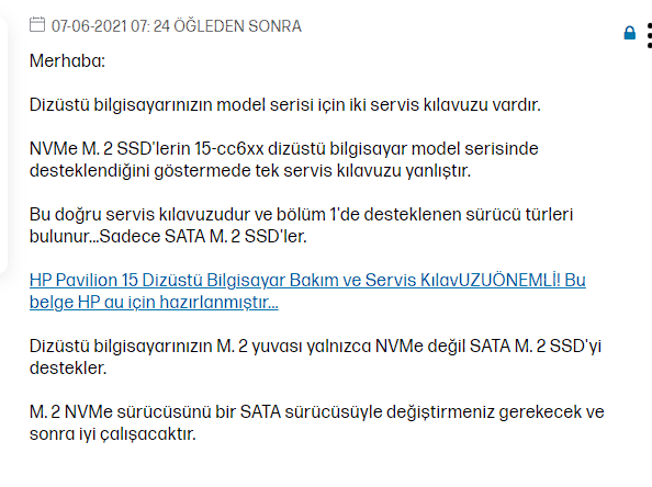 Evet hocam, aynı zamanda hard disc sentinel ve crystal disc info'dan da baktım m2 ssd gözükmüyordu. BIOS'da da gözükmüyordu