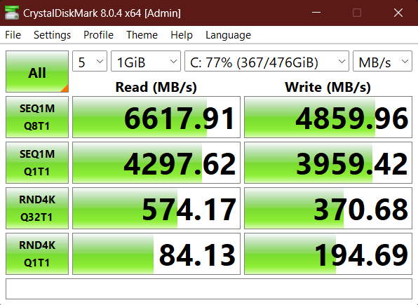 -SSD olarak aşırı şaşırdım bu hızları asla beklemezdim. Samsung mzVL2512HCJQ-00bh1 512gb modeli. Samsung 980Pro'nun OEM hali, DRAM mevcut. Okuma ve yazma testi;
