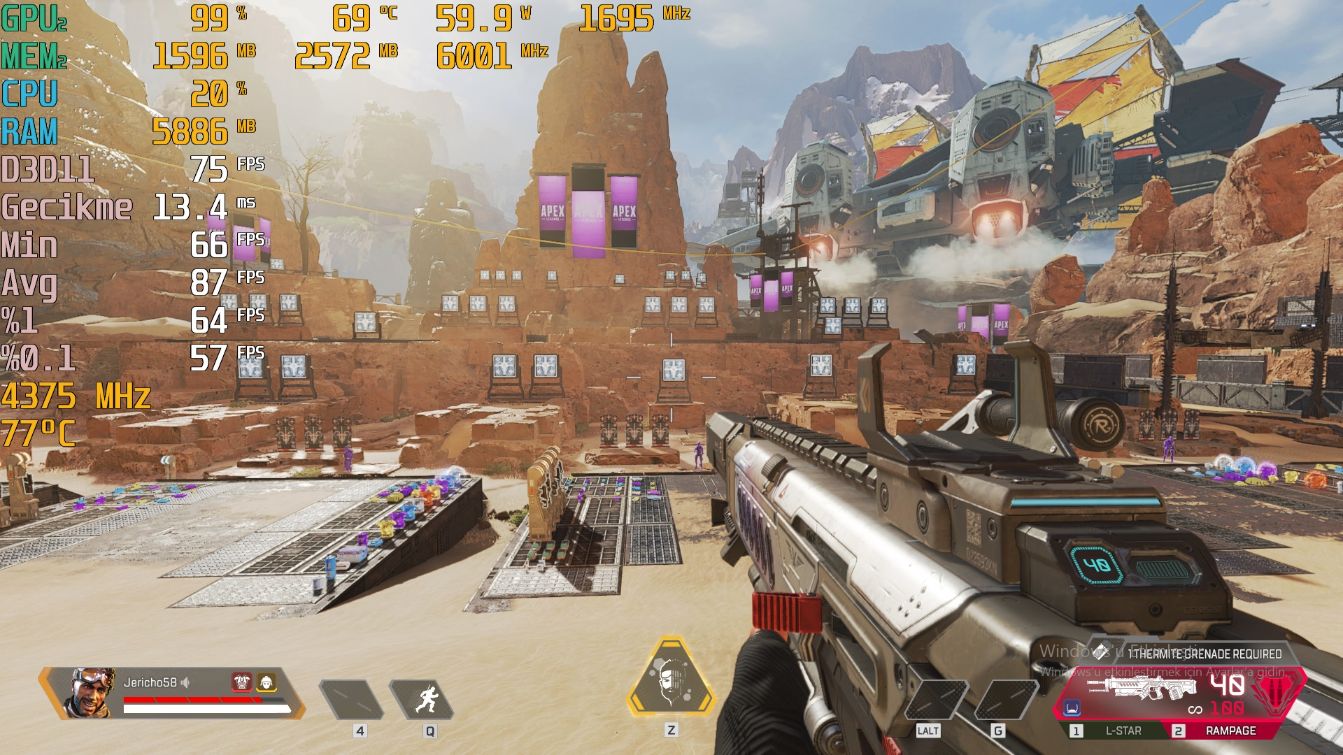 Apex Legends (ayarlara dokunmadım high ayarları seçmişti daha üstü yok)