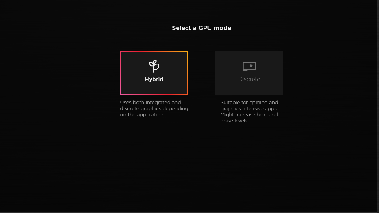 Ekran kartı hybrid olarak kullanılıyordur muhtemelen. Ben de victus kullanıyorum. İstersen bu ayarı değiştirebiliyorsun. Bu özellik, ihtiyacın olmadığın sürece ekran kartını kullanmamanı sağlıyor. Oyuna vs. girdiğinde otomatik olarak çalışmaya başlıyor
