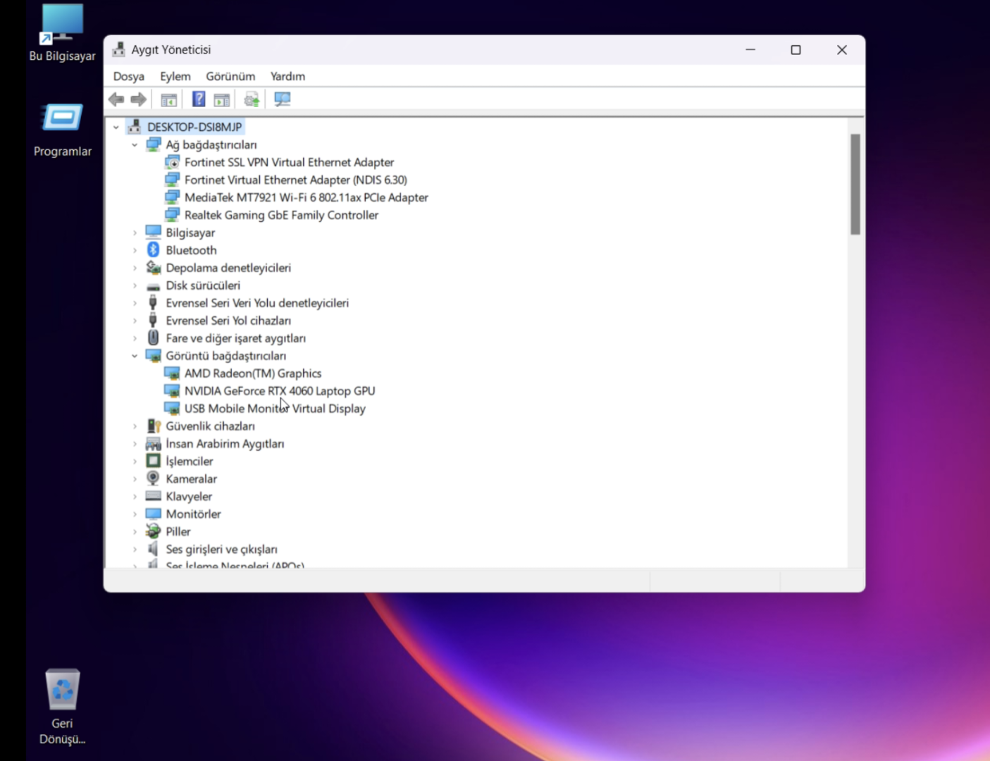 Ekran kartımda bir sorun olduğunu düşünümüyorum olsaydı muhtemelen burada sarı simge vs. olurdu: