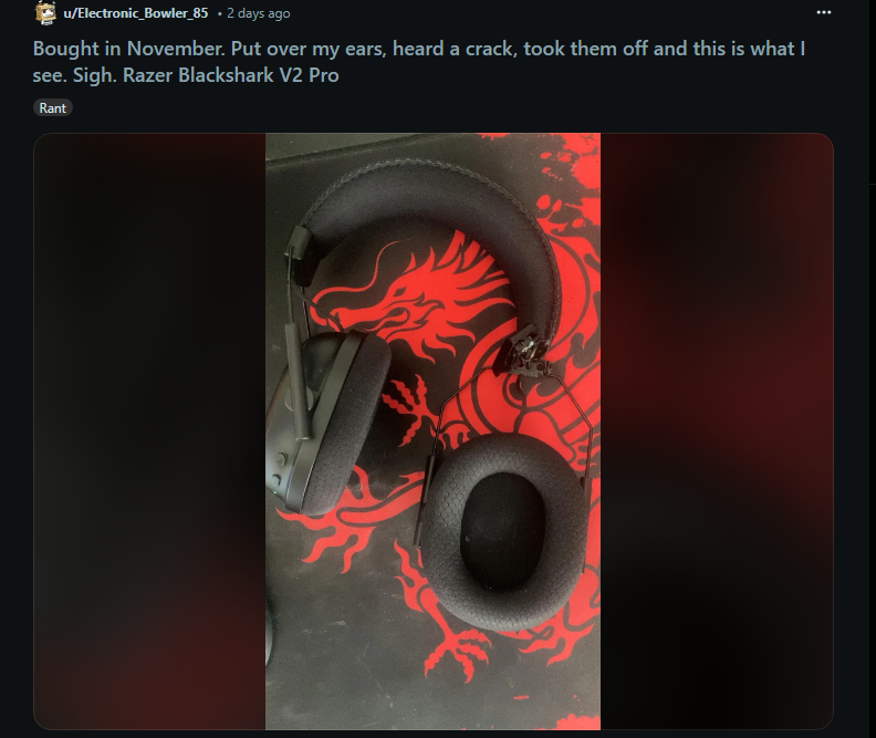 Fiyatına göre iyi, ne yapayım arkadaşa V2 Pro 2023 çok iyidir kesin al mı diyeyim, 2 ay kullanacak menteşesı kopucak fotolardakı gibi, sadece Reddit'e girdim ve Razer'a tıkladım BlackShark V2 Pro 2023 hakkında 1 gram bir şey bile yazmadım 2 günde milyonlarca şikayet gördüm sadece 2 günde, ne kadar acınası...