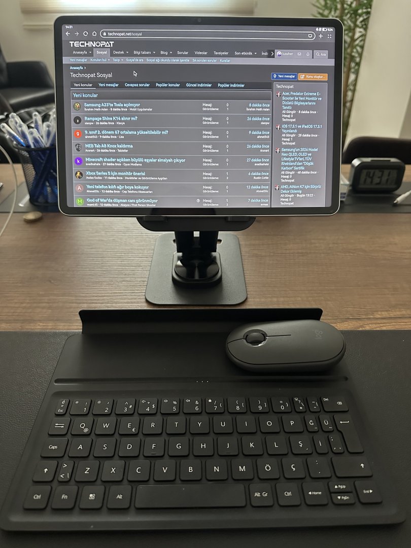 Neden Air modelini tercih ettiğimi şöyle özetleyeyim, popüler olan 11.5 modelin hdmi bağlantısı ile görüntü vermediğini öğrenince direkt Air modelinde karar kıldım. Pro olan model ise benim taleplerim için fazlaydı. Ürünü almamdaki bir diğer sebep çoğu MatePad serisinde bulunan klavyeli kılıf kolaylığıydı. Şu anda da bu incelemeyi sizlere bu klavye ile yazıyorum. Bu zamana kadar geçen sürede keyifliydi, sadece baş harfleri büyük yazarken caps tuşuna tam basamadığımdan bir kaç tekrar yapmam gerekti. (Deneme amaçlı böyle kullandım, shift ile kullanım daha rahat tabii) Ürün geldikten sonra hemen bir adet Logitech Pebble mouse, (ince bir tasarımı olduğundan çantama rahatça sığması ve de sessiz olmasından özellikle tercih ettim) bir adet de Type-C bağlantılı HDMI, USB ve yine Type-C çıkışlı bir adaptör aldım. Ekstra olarak da bir tablet standı satın aldım, dik oturma pozisyonunda tablet tam karşımda kalsın istediğim için. Tamamen bir bilgisayar deneyimi elde ettiğimi düşünerek gündelik olarak kullanmaya başladım.