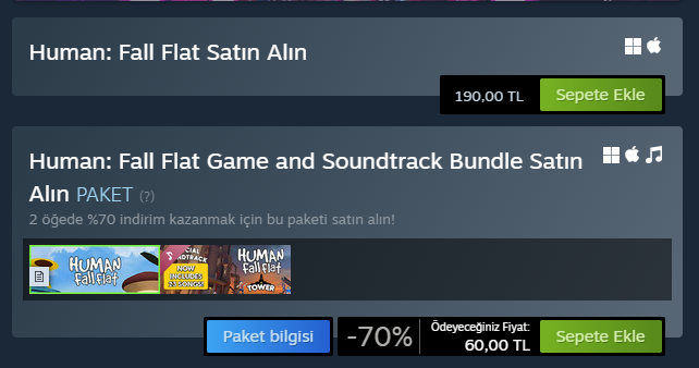 Ana oyun 190 TL. Ama Sanırsam bir hata sonucu ana Oyun + Soundtrack 60 TL. Alacaklar elini çabuk tutsun.