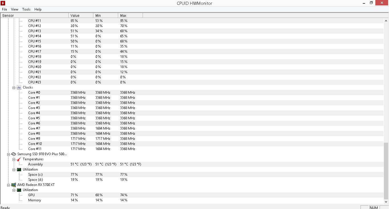 Merhaba arkadaşlar, görseldeki kullanıma göre HW monitör değerlerim normal mi? Fazla mı ısınıyor yoksa stabil iyi değerde mi?