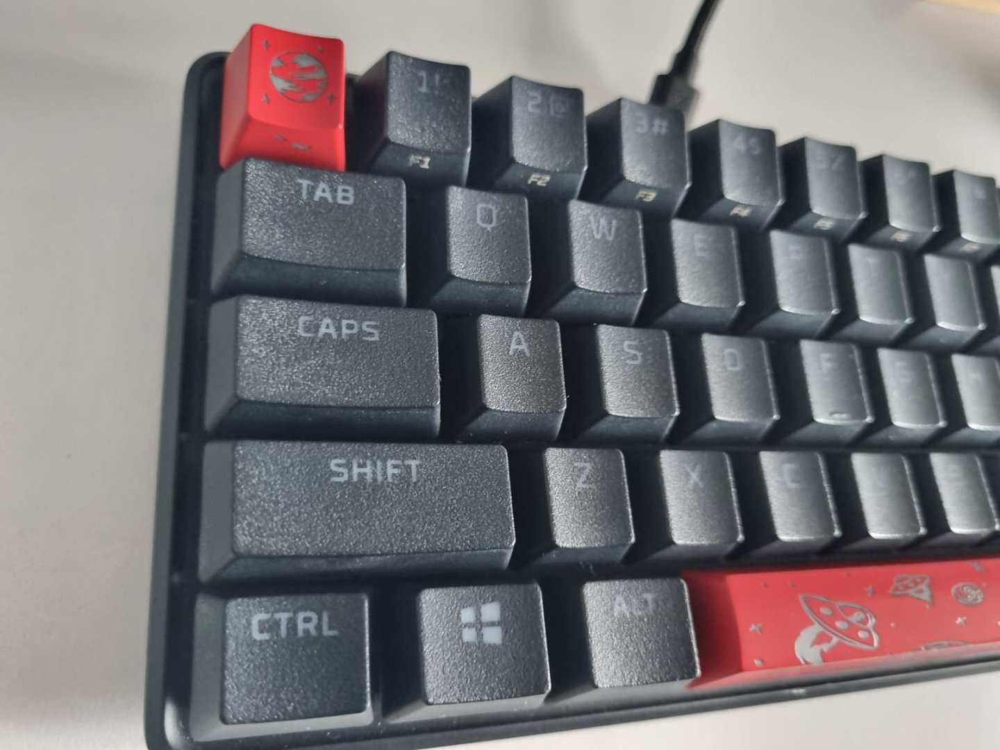 Kutusu bence gayet temiz ve hoş. İçerisinden klavye, 1 adet HyperX USB-C kablo. 1 adet HyperX keycaps puller ve ayrı olarak 2 adet ABS tuş gönderiyorlar. ESC ve SPACE tuşları için. Bunlar uzay temalı. Aldığınız switch'e göre farklı renk geliyor.