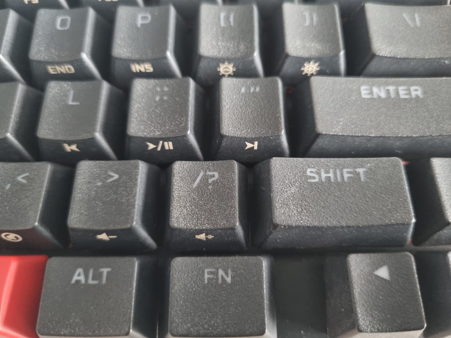 Teşekkürler. Eğer ki uzun kullanımım olursa paylaşırım tabii ki. Ama şöyle bir şey var klavyeyi alalı 3 gün oldu sanırsam ve ilk geldiği gün klavyenin keycapslerini ve kendisini temizlemek istedim sonuçta 2.el ürün. Neyse keycapsleri söktüm kasayı temizledim o ara bir leğene ılık su boşalttım ve keycapsleri koydum 3-5 dakika bekledim. Sonrasında kuruması için bıraktım 15-20 dakika sonra baktım ki keycapsler baya kötü olmuş. Renkleri atmış gibi buraya da bırakırım. HyperX ile mail ile görüştüm ama 2.el ürün olduğu için destek vermediklerini belirttiler.... Bir kaç gün geçti ve bu kadar kötü durumda değil keycapsler.