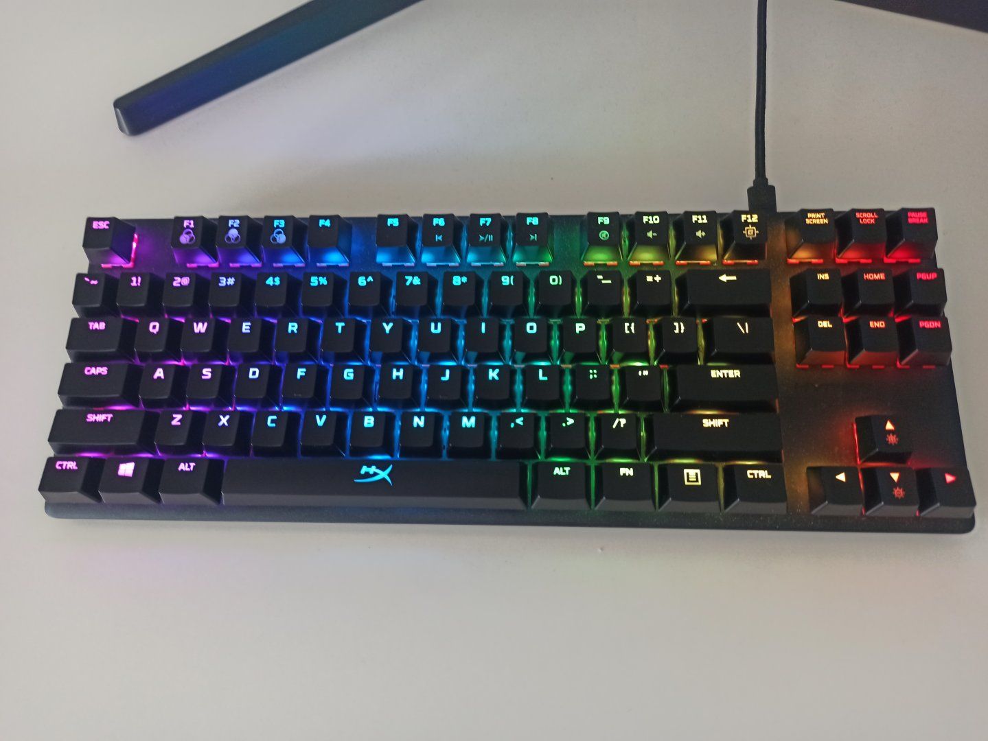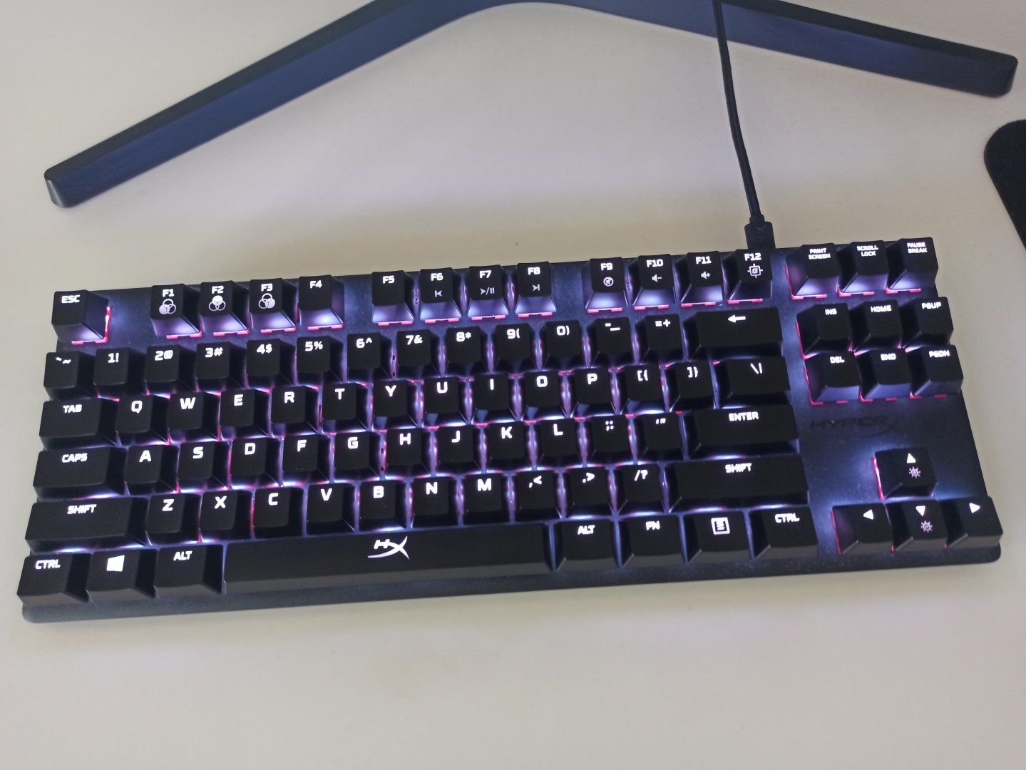 Klavyemiz TKL (açılımı tenkeyless olan bu İngilizce kelimenin Türkçe anlamı Numpad'i bulunmayan klavye demek diyebiliriz) ve klavyede HyperX'in kendi Red Switch'leri kullanılmış. Bu Red Switch'ler 80 milyon tuş basma ömrüne sahip.