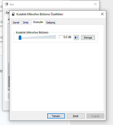 Mikrofon sesi her yerde çok az ve telsiz gibi gidiyor. Ses ayarlarında kayıtta mikrofona özellikler dediğimde ise düzeylerde aşağıdaki gibi gözüküyor sesi arttıramıyorum sebebi nedir?