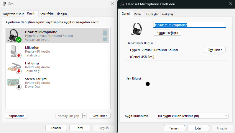 Bilgisayarın M.2 SSD'sini 1TB'a yükselttim. Bundan dolayı sıfırdan temiz Windows 11 kurulumu yaptım. Bütün sürücüleri vs. güncel bir şekilde kurdum fakat mikrofonum şuan çalışmıyor. Sistem kurulumundan önce herhangi bir sorun yoktu. HyperX sitesi üzerinden kulaklık firmware güncelleme işleminide yaptım ama herhangi bir şekilde çözüm olmadı. USB ses kartını kullanıyorum.