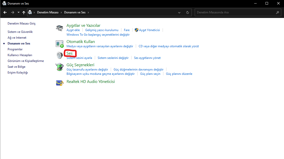 Denetim Masası'na gidin,
