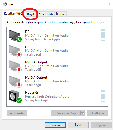 Açılan pencereden Kayıt'a tıklayın,