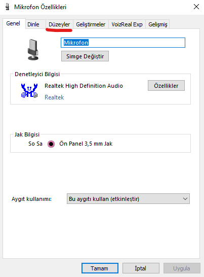 Ses denetim masası>kayıt>oradan mikrofonunuza sağ tıklayın >özelliklere >düzeyler oradan da 100 yapın