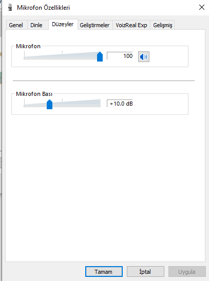 Mikrofon'u 100, Mikrofon Bası'nı ise +10.0 dB yapın.