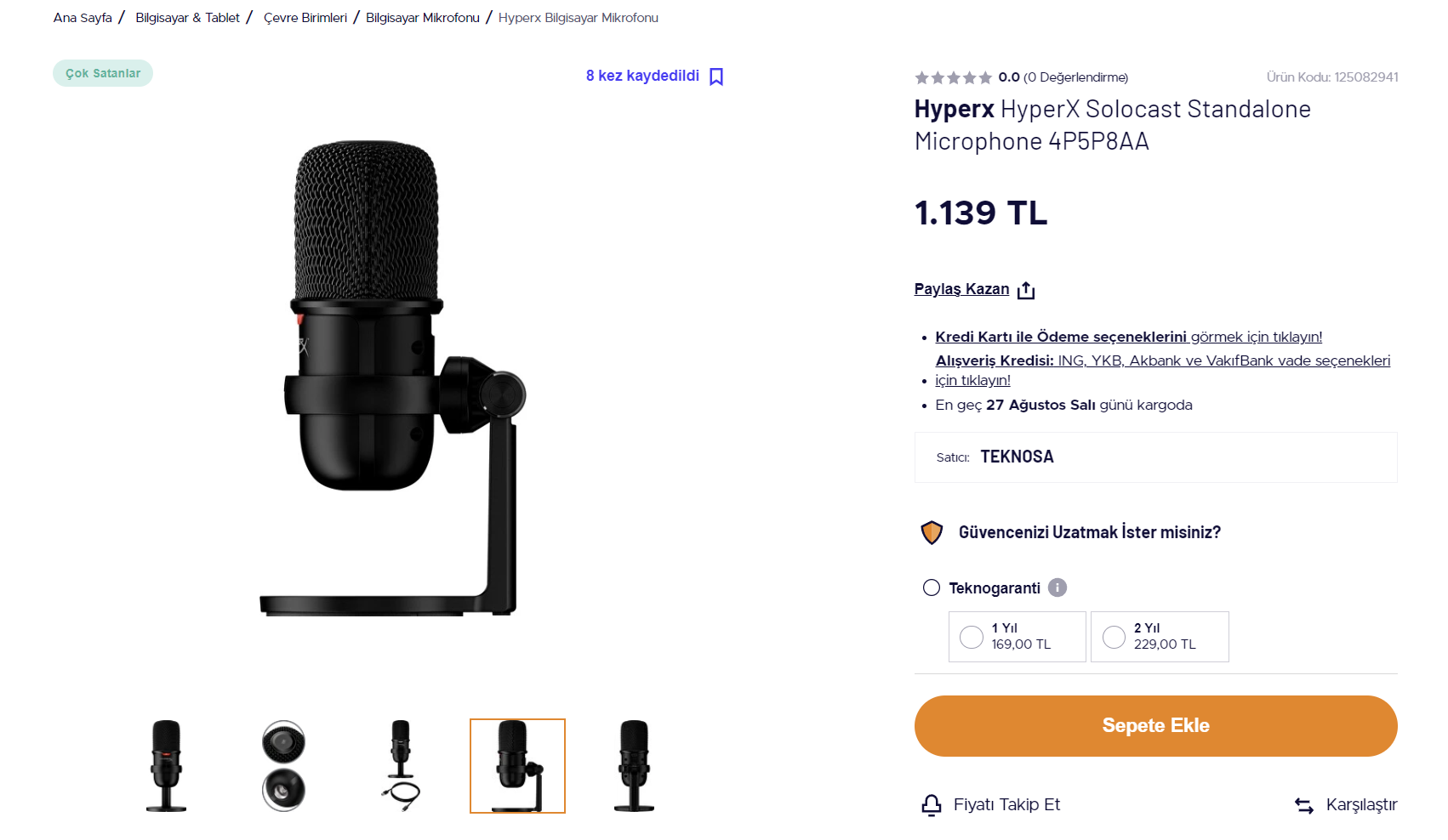 HyperX Solocast Standalone Microphone 4P5P8AA özelliklerini incelemek ve en uygun fiyata satın almak için hemen tıkla!