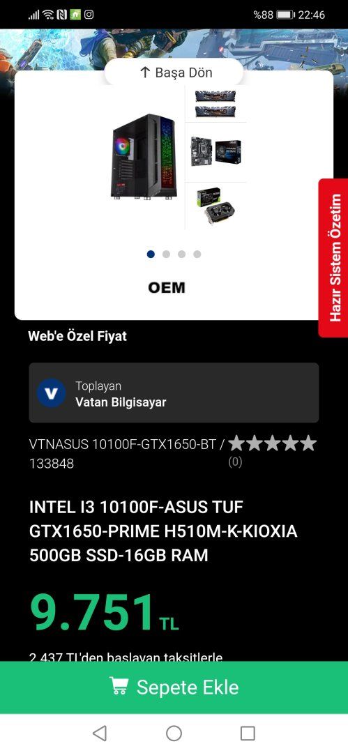 i3 10100F sistem Vatan'dan alınır mı?