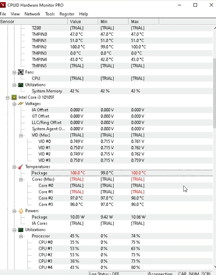 Arkadaşlar, arkadaşımın sistemindeki işlemci 100 dereceleri görüyor boşta bile, aşağıya HWMonitor SS'ini atıyorum afterburnerda'da 100 derece. Macunu sürmüş stok fanıda düzgün takmış neden böyle yapar? Ve anlamadığım şekilde de bu derecelerde sistem kapanmıyor ve 100 dereceyide kesinlikle geçmiyor sabit. (Düzenleme) = Boşta 78 dereceymiş