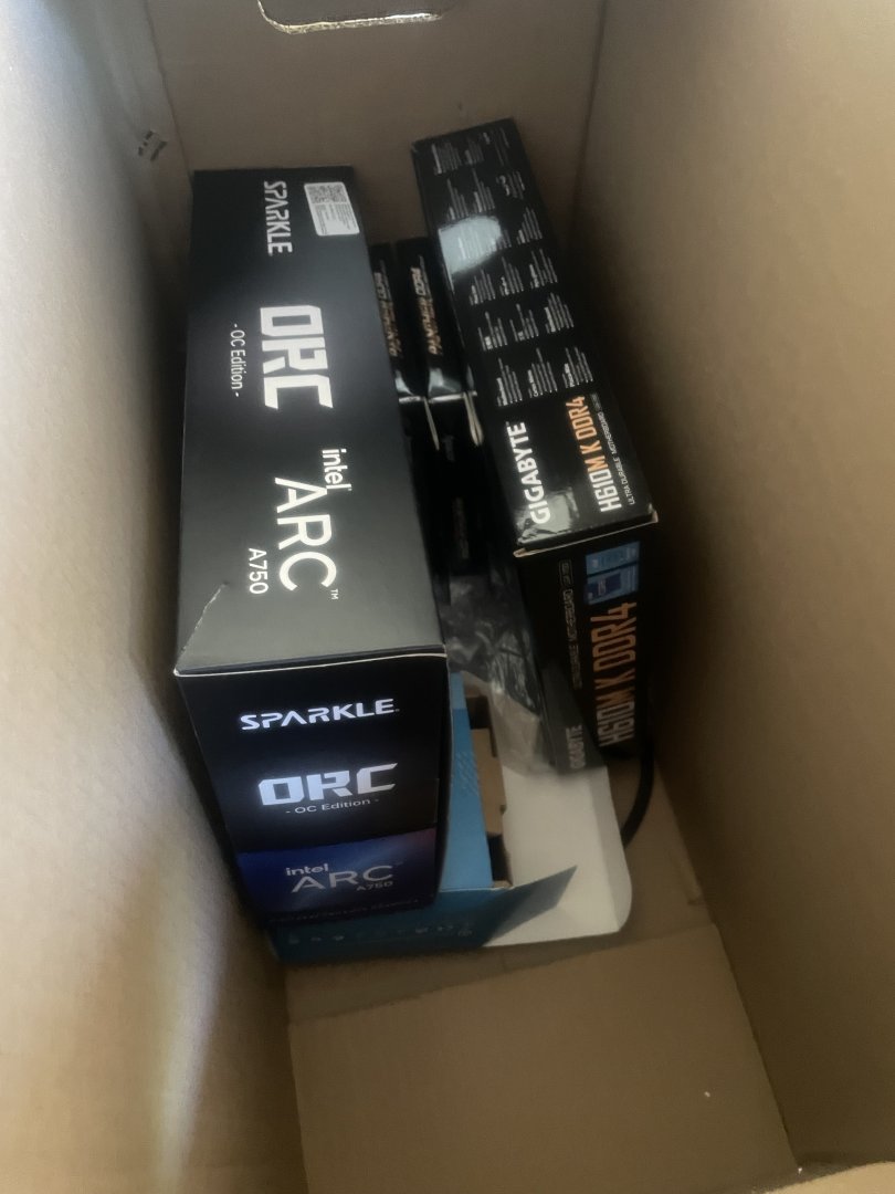 i3 12100F - Intel arc a750 - 16 gb DDR4 3200 mhz cl16 ram - gigabayte h610mK anakart