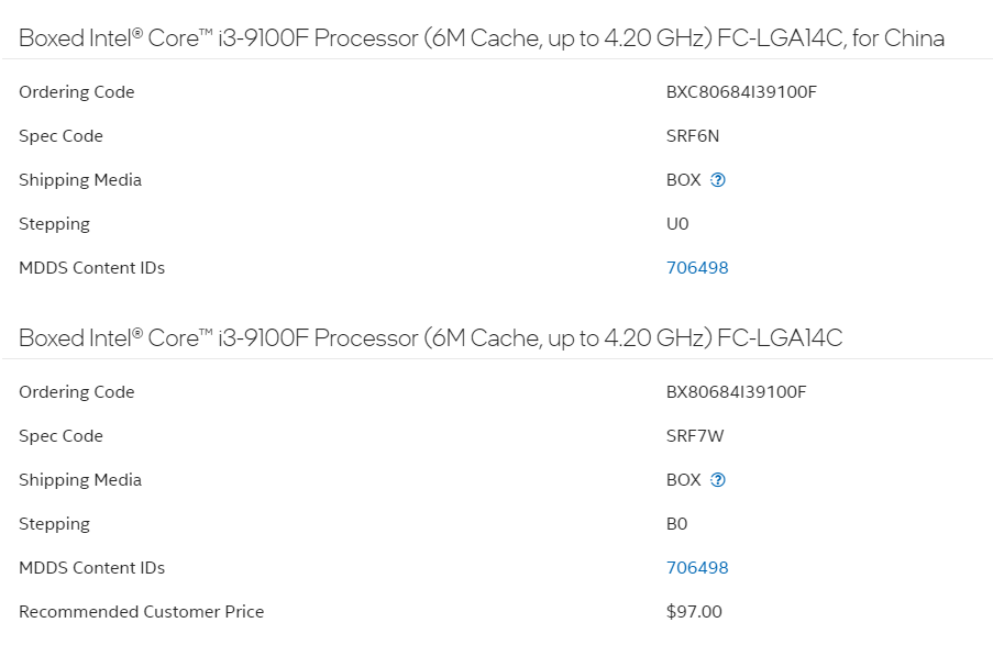 i3-9100F işlemcideki kodlar nedir?