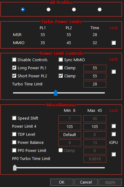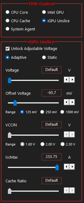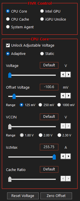 "-" (eksi) yaptığımız yerler offset voltage mi? Ben yapınca pc donuyor.Kendi cihazımda 10 derecelere kadar düşüş sağladım ama bana en büyük artısı fan sesinin azalması oldu. Cihazım boş kullanımda fanı kapatıyor. Küçük işlerde çok sessiz çalışıyor veya yüksek Hz'lerde sabit stabil kalabiliyor.