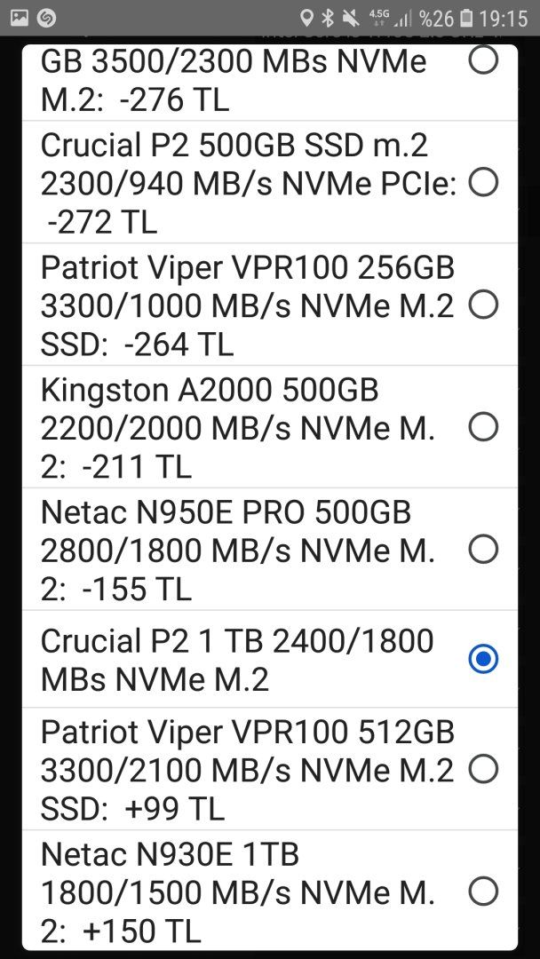 O zaman sıkıntı yok hocam hayırlı olsun, herhangi bir sıkıntı gözükmüyor. Ama yine de o SSD yerine farklı alternatifler varsa listeleyin bir bakalım.
