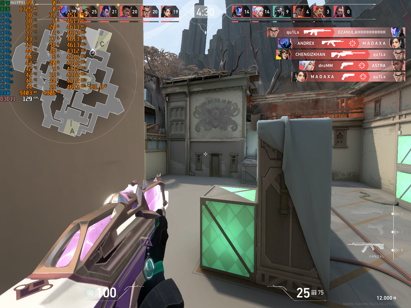 Öncelikle herkese merhabalar. Şu son 4 gündür Valorant'ta gereksiz bir şekilde 120 FPS'den 30 ila - 60 FPS'ye kadar drop yemeye başladım. Sistemim oyunu 4 gün öncesine kadar rahatlıkla en düşük ayarlarda oynatıyordu.
