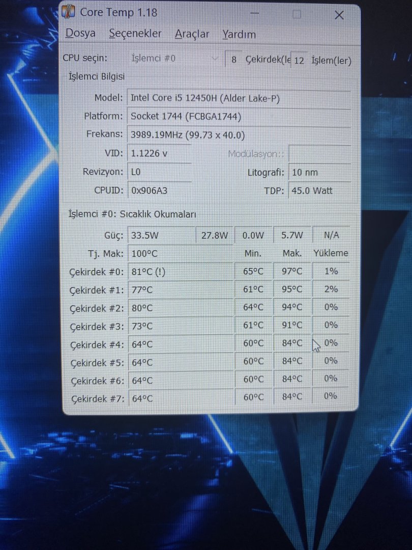 Arkadaşlar bir sorum olacaktı. Epic Games üzerinden Rocket League oynuyorum yüksek ayarlarda fakat işlemcimin sıcaklığı normalin üstünde. Antalya da yaşıyorum ayrıca hava sıcaklığı da etkendir diye düşünüyorum fotoğrafı ekleyeceğim. Sizce termal macununu yeniletmeli miyim ya da önerdiğiniz bir şey var mıdır? Soğutucuyla beraber kullanıyorum laptopu.