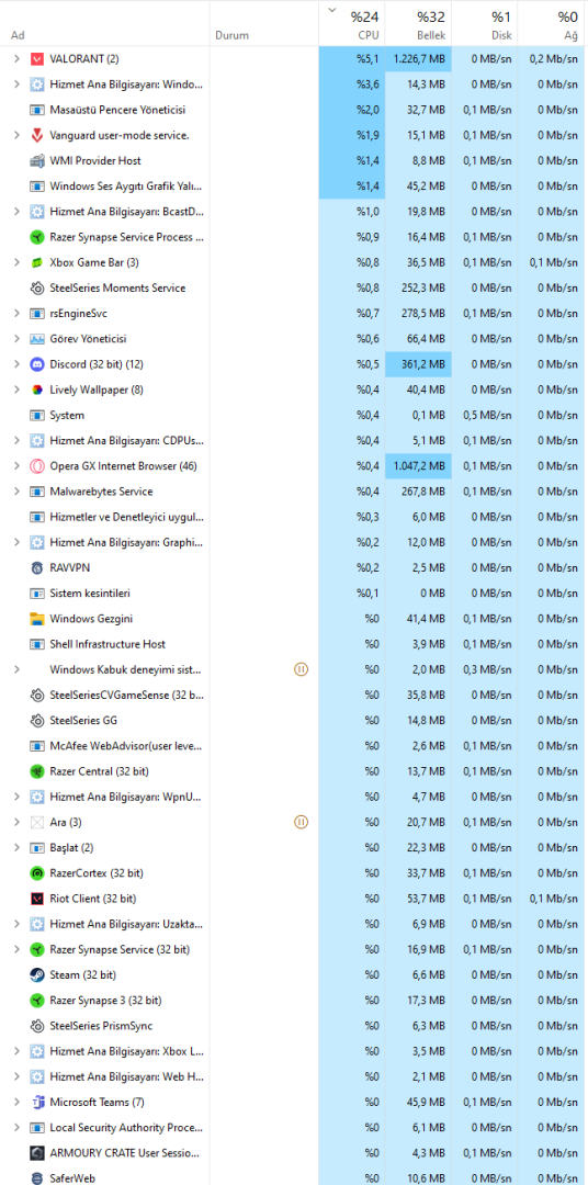Ayrıca bilgisar özellikle oyun içinde çok donuyor ve arama çubuğu çalışmıyor. Geçen gün crackli oyun indirmeye çalışmış misafir oradan mining yapan virüs inmiş olabilir mi? Ayrıca masaüstü daha iyi gözüksün diye lively wallpaper ve rainmeter kullanıyorum o çok kullanıyor olabilir mi?