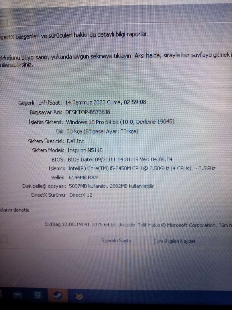 i5-2450M 2.5GHz işlemci.