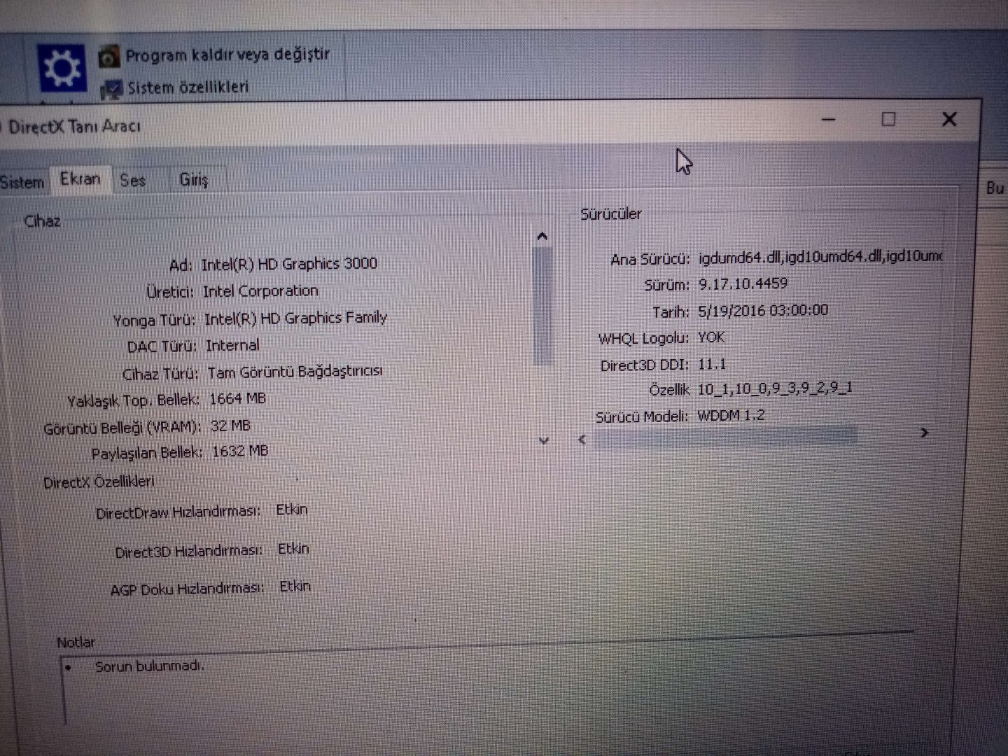 HD graphich 3000 ekran kartı.