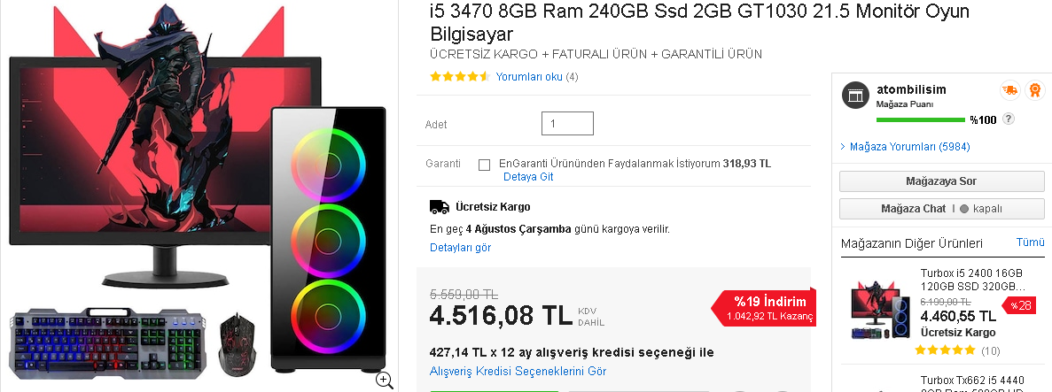 İnternetten baktığım bir ürün var, %19 indirime girmiş. Sizce alınır mı? Monitör dahil. Link burada. Bir tane daha link ekledim. Gözüme takıldı