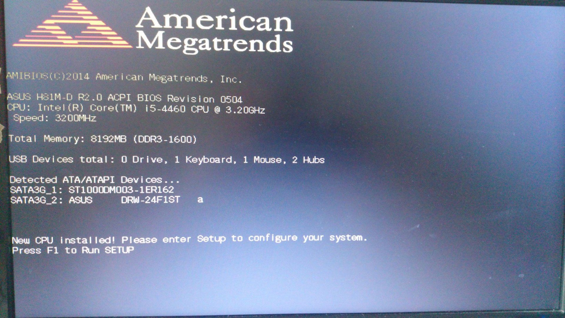 i5 4460 PC temizlik sonrası New CPU installed! Please enter setup to configure your System yazısı çıktı