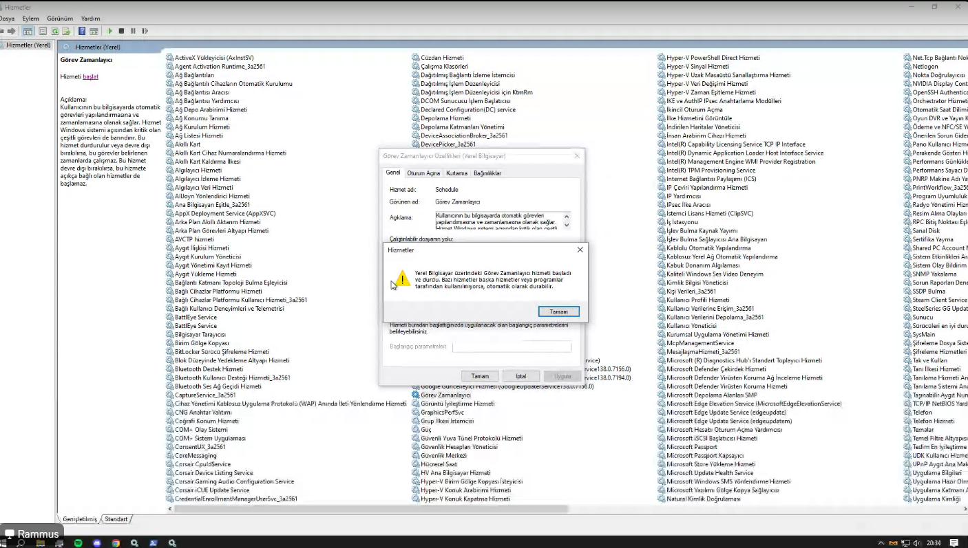 Hizmetlerde görev zamanlayıcı hizmeti bu şekilde ayarlı mı?