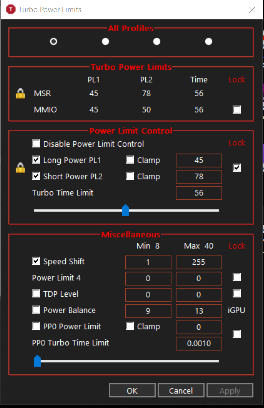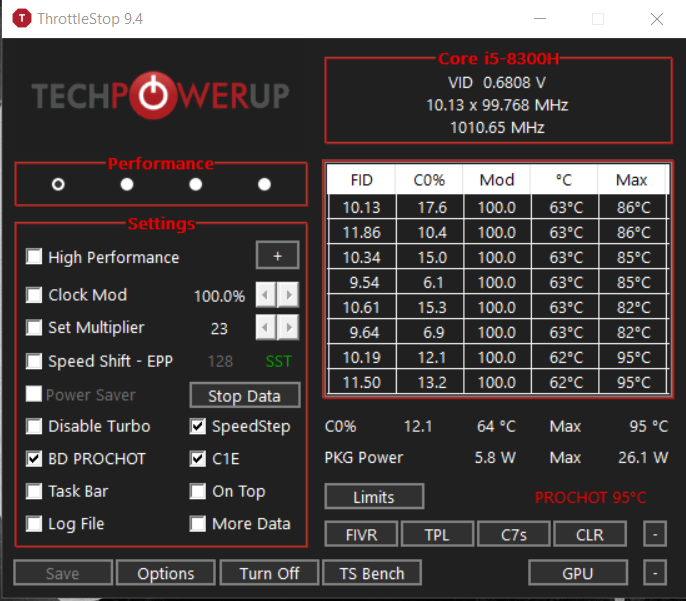 Arkadaşlar öncelikle merhaba. Monster Abra A5 v13.3 dizüstü bilgisayar kullanıyorum. İnternetten izlediğim videolara göre düşük FPS aldığım için ve FPS düşmesi sorunu çok fazla olduğu için biraz da olsa çözmek için ThrottleStop indirdim ve rehbere göre kendime birkaç ayar yaptım. Fakat limits kısmına girdiğim zaman EDP Other kısmında kırmızı ışık yanıyor ve bunu nasıl çözeceğimi, ne olduğunu bilmiyorum. O yüzden neler yapabileceğime dair buraya konu açmak istedim. Yardımlarınız için şimdiden teşekkür ederim. (Rehbere @erengore arkadaşımızdan baktım.)