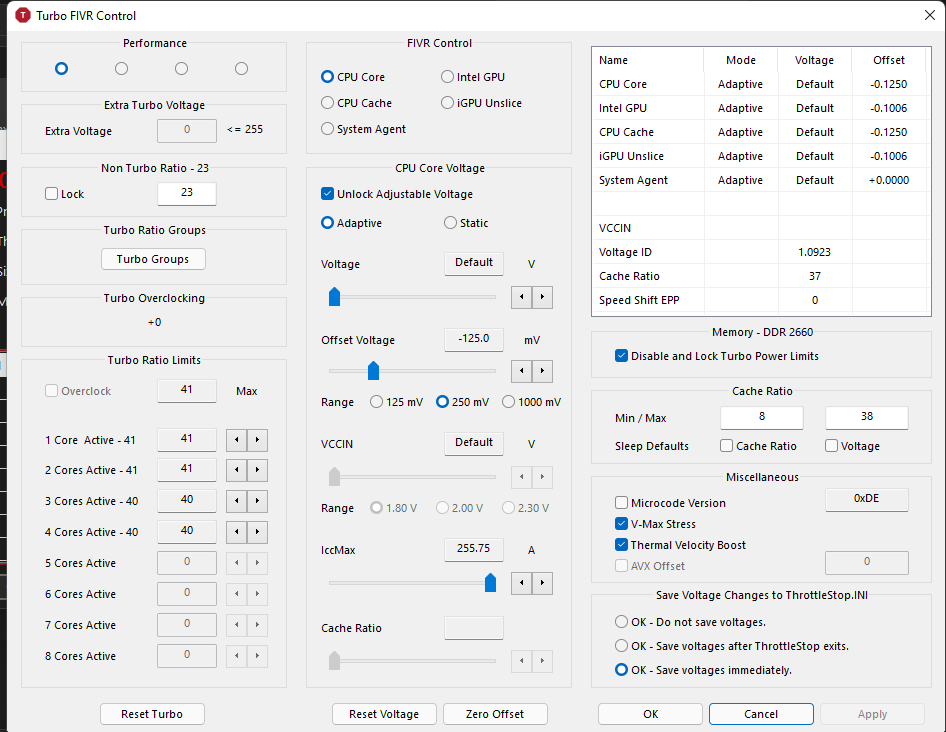 128 yaparak da deneyin. Yine olmazsa yapacak birşey yok. İşe yaramazsa IccMax değerlerini maksimuma çekin. Power Limit 4'ü de 0 veya 1023 olarak ayarlayın. Bu problem hariç çoğu problem çözülmüş durumda zaten gördüğünüz gibi. Maalesef bunu gideremedim hocam. :(