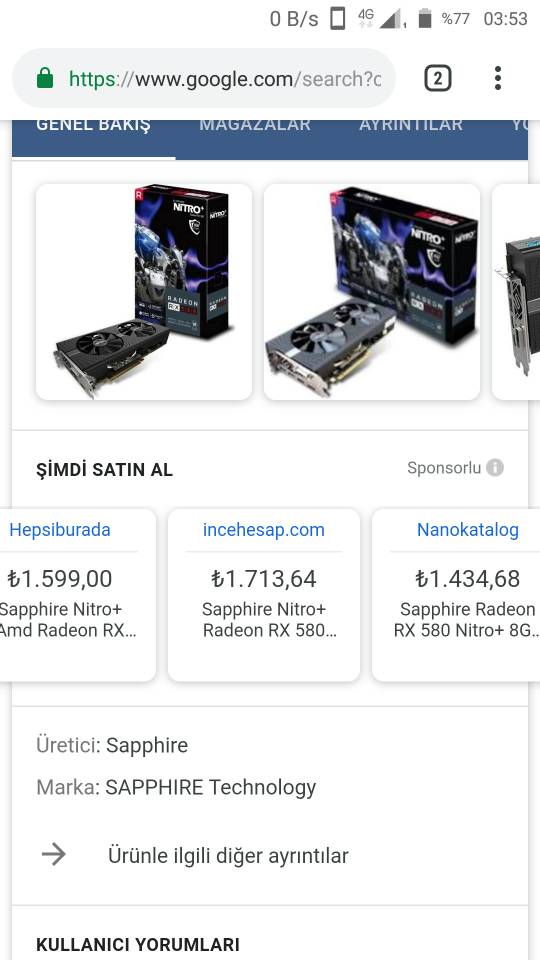 Rx 580 1100-1400 TL arası bulunabiliyor düzgün fiyat araştırması yapınSıkıntılı bir RX 580 nitro 1700 TL incehesapta. Galax 1060 1400 TL civarı bu 1. 2.si bir şey deme sen amd ilk önce gitsin bı TDP değerini cozsun. Nitro modeli hariç ısınma sorununu cozsun. Global wattman sorununu cozsun. Yazılımsal sorununu millete uzun süre cektirmesin. Kaç ay aradan sonra sorunu anca çözebildiler yazılımla. Onuda wattman sözleşmeni onaylamama kaydıyla. Neyse sen git RX al doya doya oyna. Bende Nvdia ile okey ? Ben her zaman her yerde AMD kendini düzelmedigi sürece RX de onermeyecegim. Sen öner.
