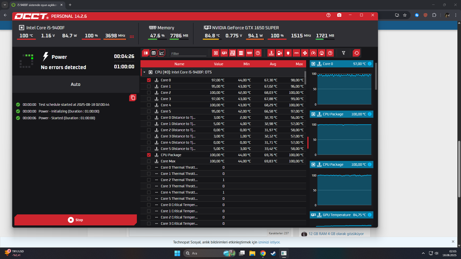 İlk öncelikle bu hata son 1 haftadır yaşanıyor bunu belirteyim. Hatayı betimleyecek olursam herhangi bir oyunda (her yaşadığımda bir oyun ekranındayken yaşadım: HOI4, CS2 vb.) Oyun bir anda donuyor ve bilgisayar donmuş oluyor Alt+Tab veyahut CTRL+Shift+delete hiçbir işe yaramıyor ve zaten çok geçmeden ekran oyun ekranından dümdüz siyah ekrana geçiyor ve bu siyah ekran kısmı gri ekran>siyah ekran döngüsünde duruyor böyle 2-3 saniyede bir griden siyaha, siyahtan siyaha dönüyor ve her yaşadığımda yaklaşık 2-3 kere bilgisayara attığım kasadan kapat aç ile bu sorun düzeldi ama rahatsız etmeye başladı beni. Bunun sebebinin ne olduğunu ve nasıl çözebileceğimi bilgili ellerden destek almak istiyorum.