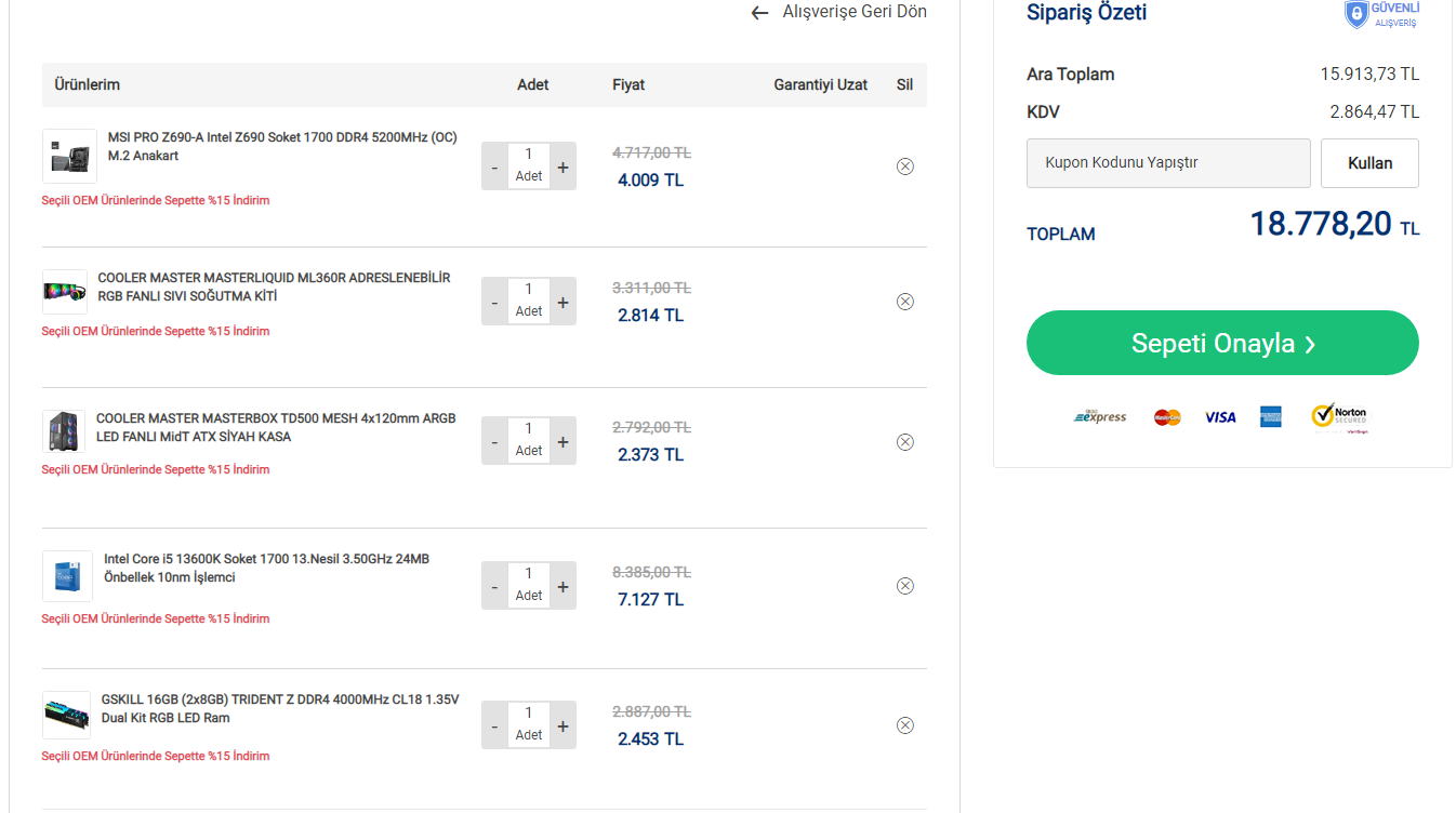 - Kasa aklımda yok önemli olan fiyat performans mesh bir kasa almak istiyorum ekran kartı ve işlemci RAM dahil olmak üzere overclock yapacağım için serin çalışması avantajdır.
