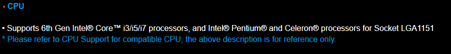 Bu iki resimde de görüldüğü üzere, i3/i5/i7 6. nesil işlemcilere, Soket LGA1151 için Pentium ve Celeron işlemcilerini destekler.