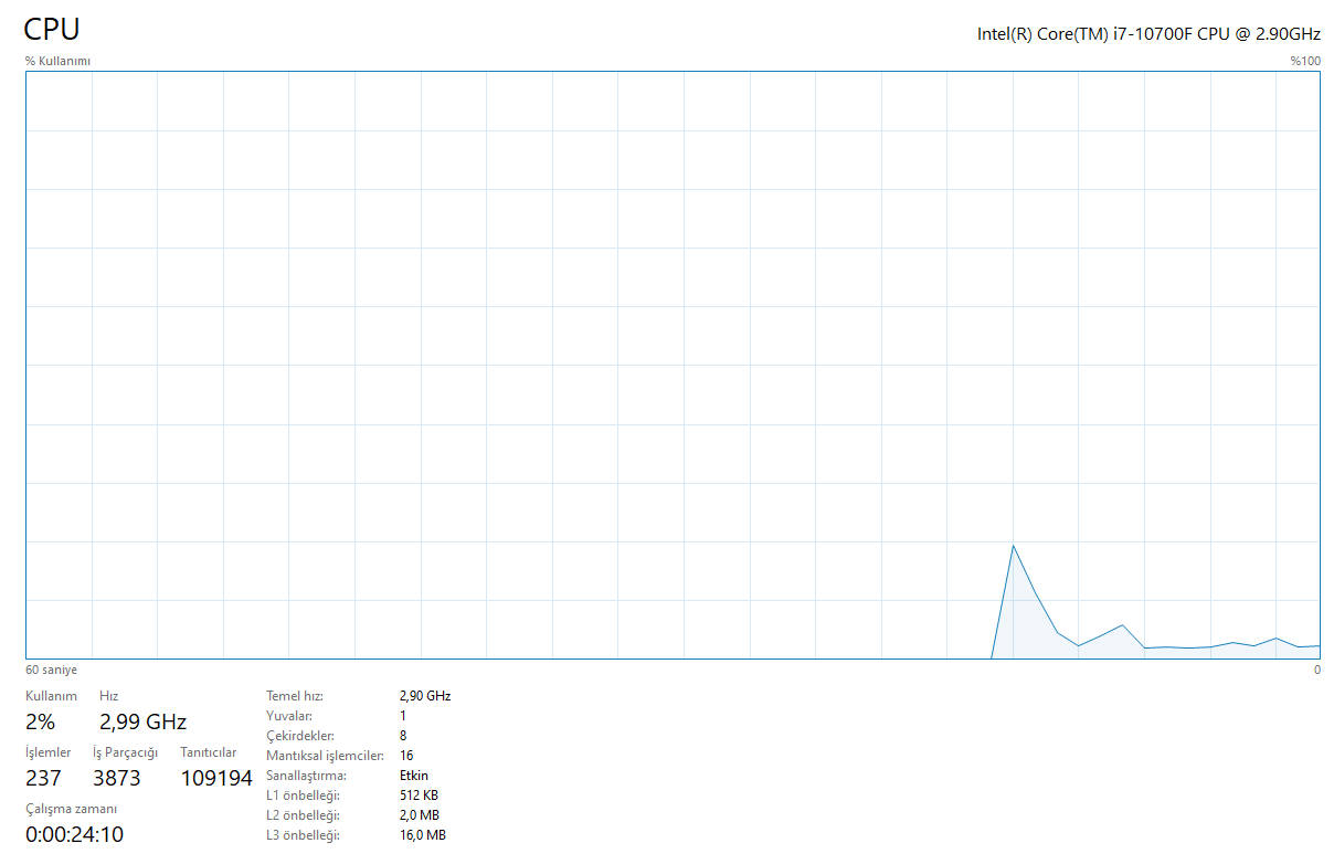 İşlemcim Intel i7 10700F normalde temel hız 2.90 GHz olmasına rağmen işlemcim boşta veya yükte fark etmez 4.60 GHz'de yani Turbo Boost hızında çalışıyor. Sistemi 2 sene önce topladım, ilk topladığım zamanlar asla böyle bir sıkıntı yoktu ancak son zamanlarda işlemci dediğim problemi yapmaya başladı. BIOS ayarlarını defaulta sıfırladım, güç planı dengeli modda çalışıyor. Ayrıca CPU-Z ve NZXT CAM gibi farklı uygulamalar kullanıyorum bu iki uygulamada işlemci frekans hızı her zaman 4.60 GHz'de görünüyor ancak görev yöneticisinde işlemci hızı dalgalanıyor bu bahsettiğim durum gibi sabit değil. Ne yapacağımı bilmiyorum yardımcı olabilir misiniz?