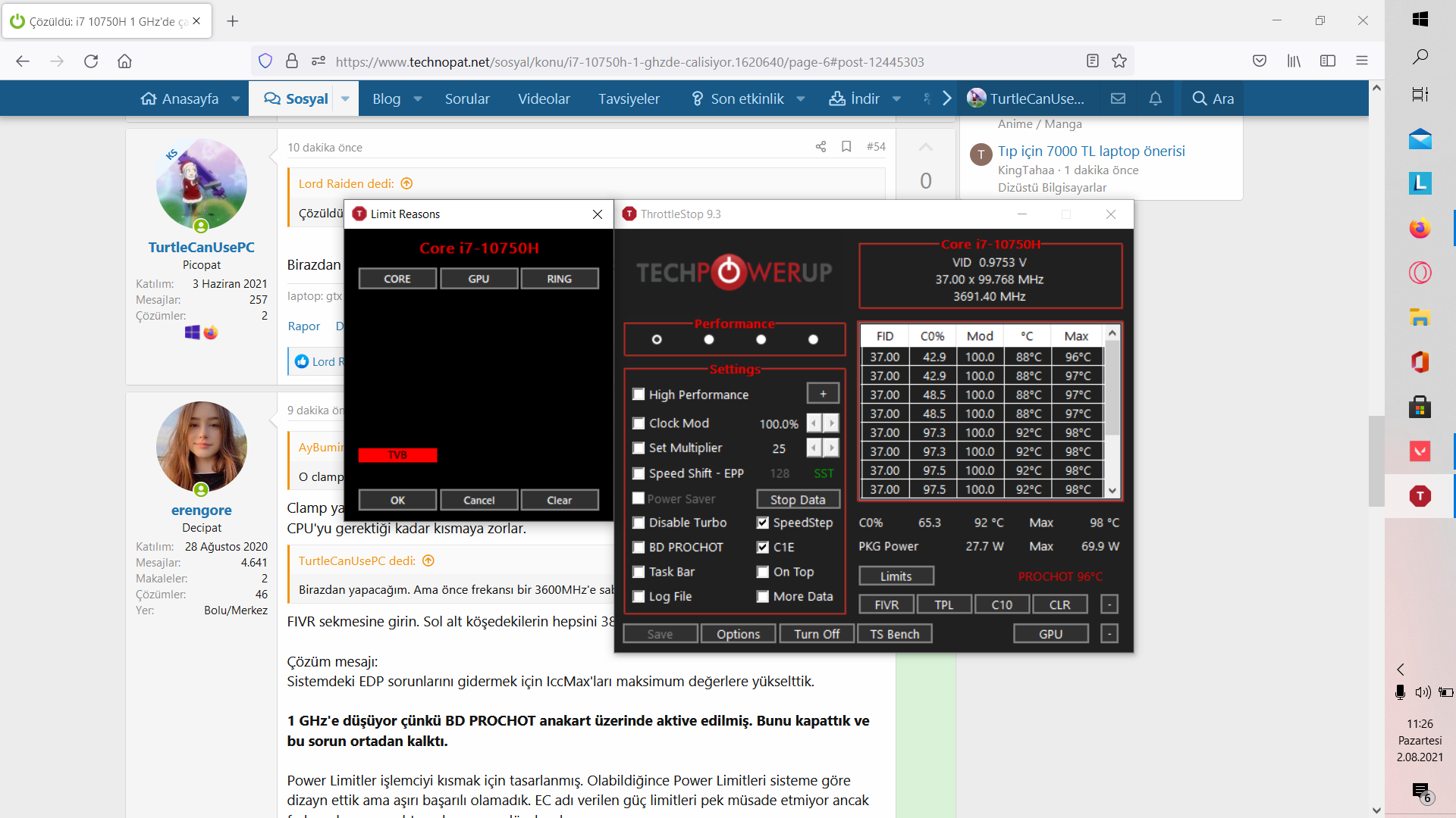 Power Limitler işlemciyi kısmak için tasarlanmış. Olabildiğince Power Limitleri sisteme göre dizayn ettik ama aşırı başarılı olamadık. EC adı verilen güç limitleri pek müsade etmiyor ancak frekans kısınca muhtemelen sorun düzelecek.