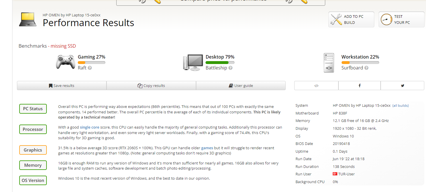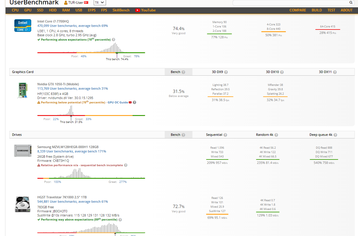 User benchmark testinde ssd kayıp uyarısı alıyorum