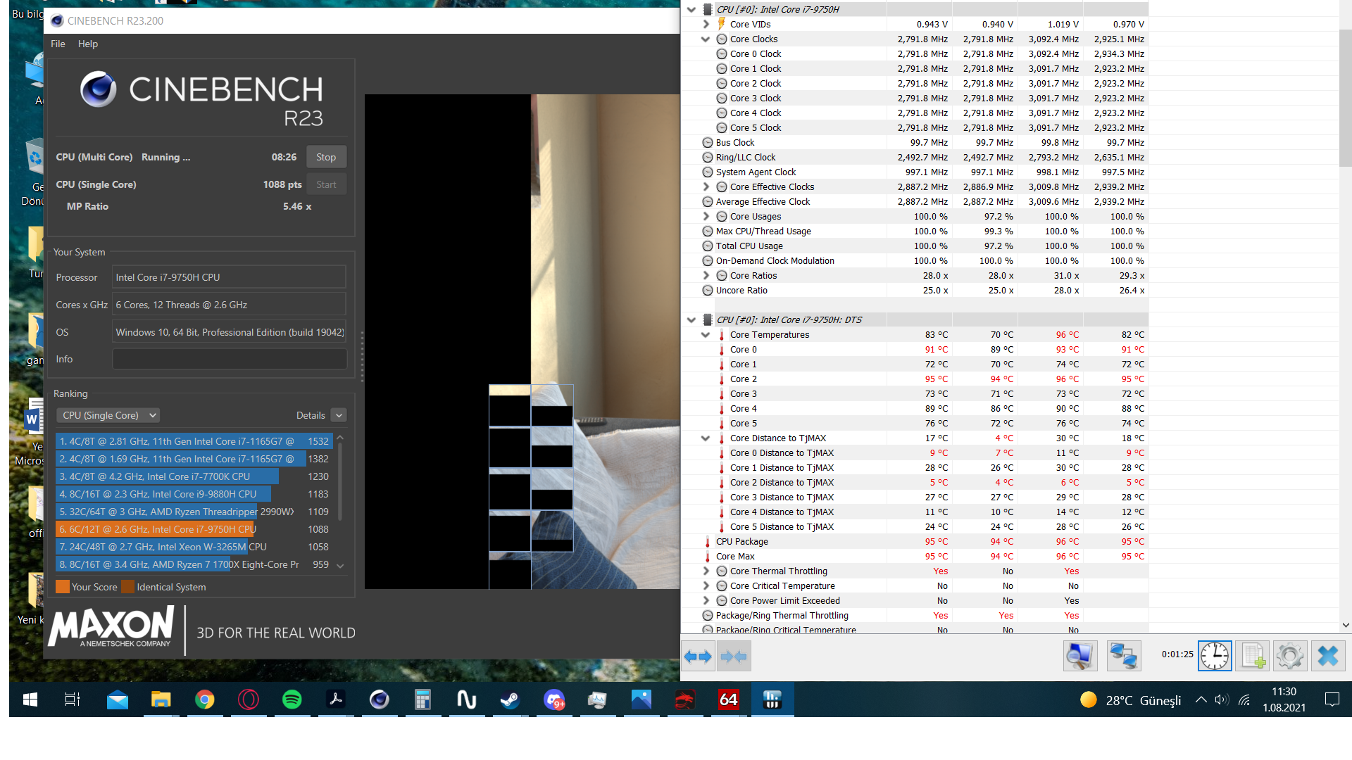 MSI GE75 serisi bilgisayar kullanıyorum. İşlemci sıcaklıkları hiç normal gelmedi ufak işlemlerde bile anlık 95 C ye çıkıyor. Thermal throttling var gözüküyor ama performans dizüstü bilgisayarlarında olağan bir durum mu o kadar detaylı bilgim yok. Garantiye yolladım 2 gün önce geldi temizlemişler testlerde problem olmadığını söylediler. Ama yine thermal throttling vardı ve en takıldığım nokta çekirdekler farklı sıcaklıklarda geziyor resim paylaşıyorum bunlar normal mi?