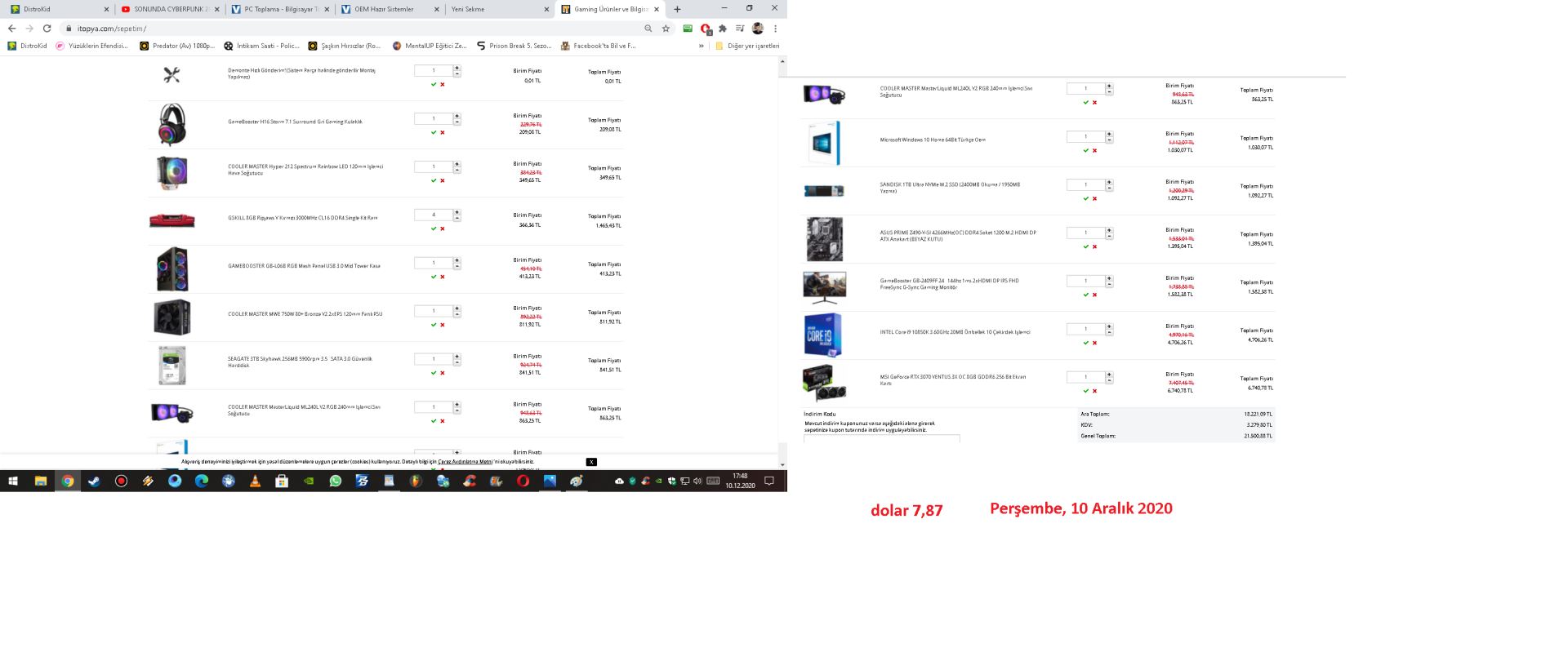 aynı şeyi anakart ram için de yapacağım böyle giderse en ucuz fiyat şuan gördüğün fiyattır...