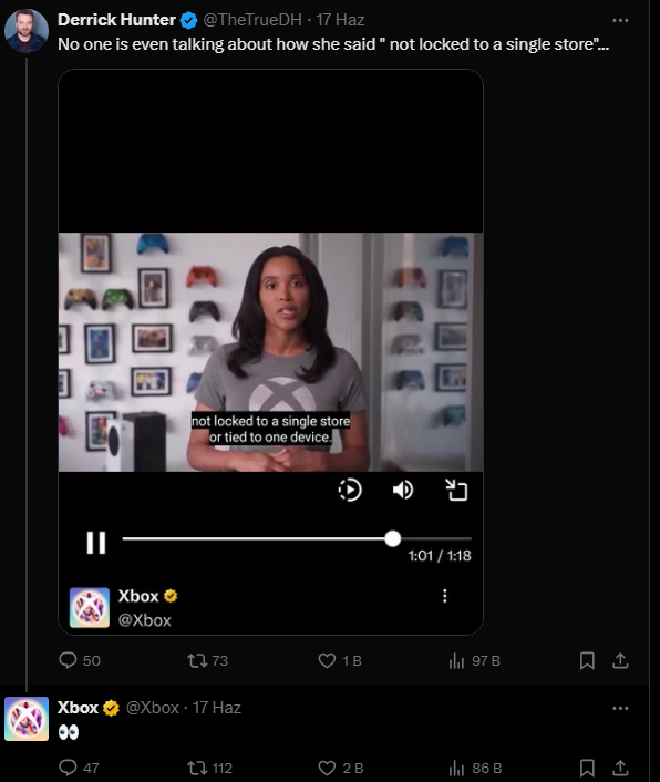Xbox'un hep tekrar ettiği ve amacladığı şeyde buydu zaten oyuncularına ulaştırabilecekleri her şeyi ulaştırıyolar rakiplerine ise tanıtım ve kar amaclı oyunlarını çıkartıyorlar herkes Xbox'un oyunları PS'da var niye aliyim diyor ancak game Pass gibi bu tarz özellikler insanı Xbox almaya iten özellikler.
