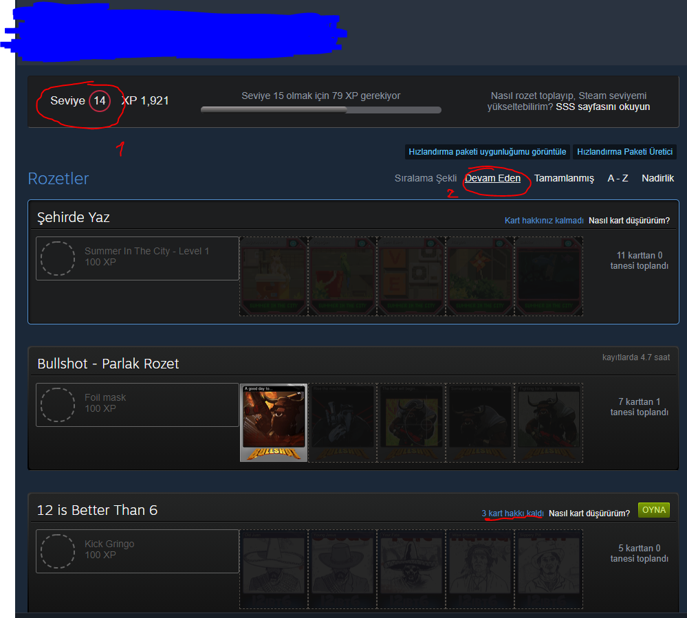 Profilinize girip kırmızı seviye yazısına basınca burada 3-5 kart hakkınız kaldı gibi yazılar çıkıyor mu?