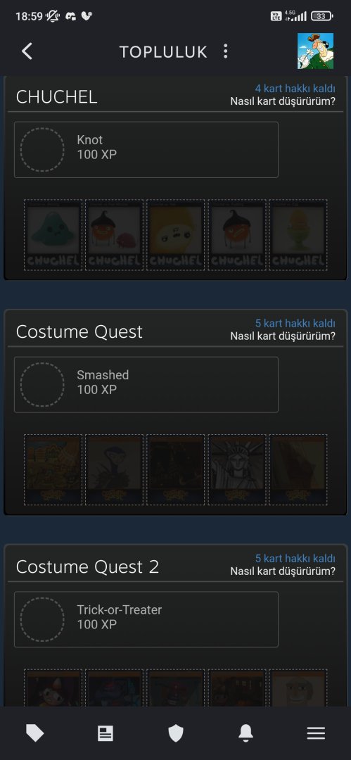 Hocam evet biliyorum onları. Siz dediniz gene bir kontrol ettim. Yakin zamanda düşük fiyatlı çok oyun topladım. Hani belki denk gelmistir aldigim oyunlarin hepsi kartsız oyunlar diye ama hayır en az 10-15 tane oyun var kart düşecek. PC'de yok ki idle master ile kart düşüreyim.