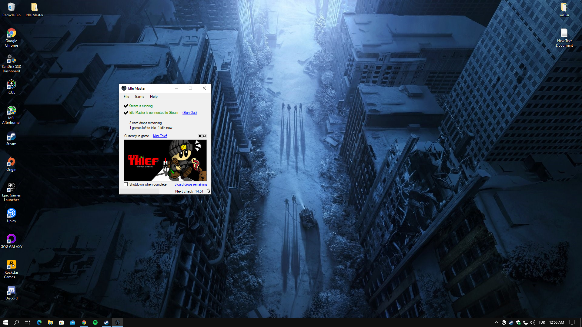 Arkadaşlar, Idle Master'ı bu linkten indirdim, ardından masaüstüne atıp IdleMaster.exe klasörünü yönetici olarak çalıştırdım, ardından şu yer geldi;